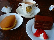 ケーキ(500円)とホットチョコレート |