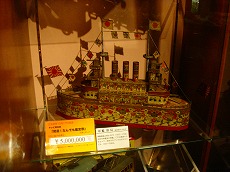 こちらはおもちゃ展示場。 高価なブリキおもちゃが並びます。 |