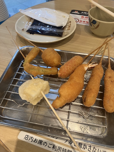 早めのお昼ご飯ということで、駅なかセット1,122円をいただきました。揚げたて!ソースは2度漬け禁止ではなくて個別パックで提供されました。サクサク感がたまりませんね。