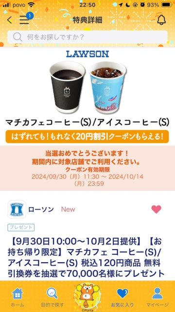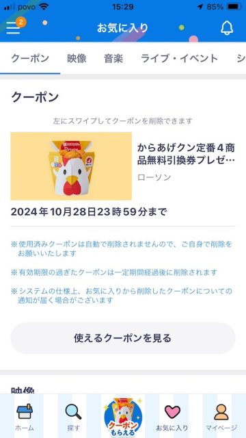 毎週火曜日の10時にクーポンが配布されるのですが、次の10月22日はからあげクン248円でした。今回もやっぱり全員もらえました。以前の250円クーポンの代わりなのかもしれないですね。この先も全員プレゼントなのでしたら、これはなかなか魅力的です!しばらく会員を続けようと思います。
