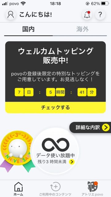 povoData Oasisが始まるというので契約をしてみたのですが、まだ始まらないですね・・いつ開始だろう??