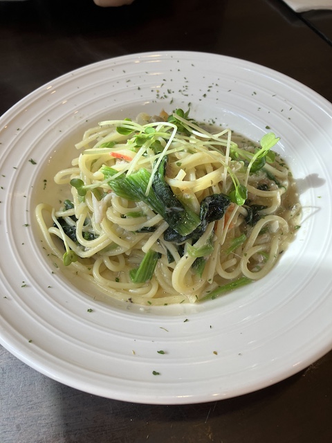 休日のランチメニューです。全部で4種類。秋刀魚のオイルパスタを注文しました。