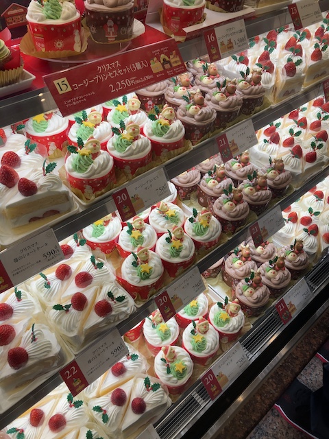 お目当てのコージーコーナー。クリスマスケーキがたくさん並んでますが、これも夜には売り切れてしまうのでしょうね。。10人ちょっと並んでましたが、どこも行列なのでしょうから素直に並んで買いました。