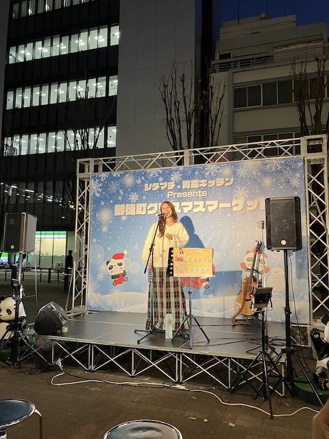 御徒町クリスマスマーケットというイベントのようですね。ミニライブもやってます。外なのでちょっと寒いですが、盛り上がっていましたよ。こちらは、長澤明日香さん。