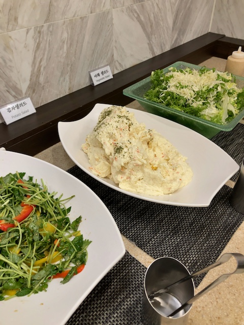 韓国風な料理が毎日5種類くらいとポテトサラダ、キャベツという組み合わせでした。