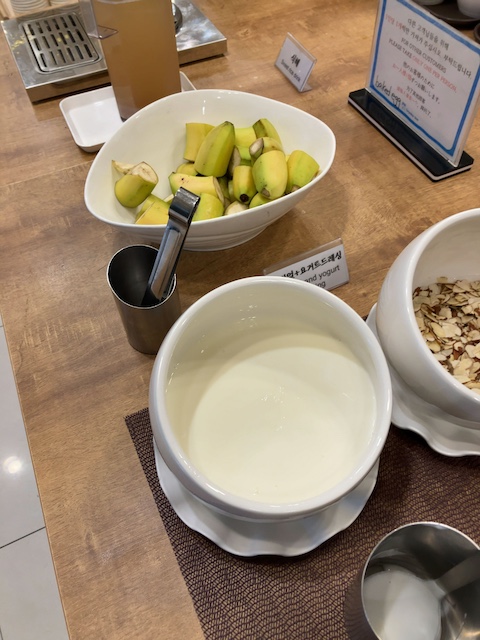 ヨーグルトとフルーツも提供されるのは、とっても嬉しい!みかんが甘くて美味しいですが、季節で変わるのででしょうね。