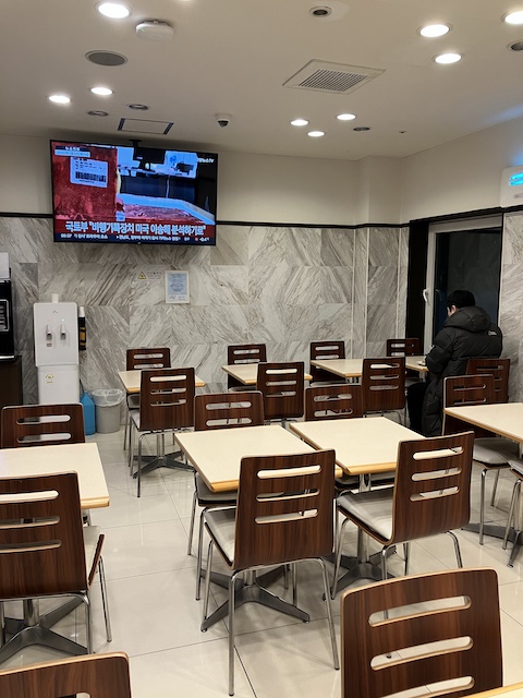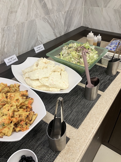 見慣れたお皿は韓国にも健在!ドリンクはオレンジジュースとコーヒー。(マシンがあります。)