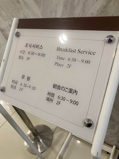 2階の朝食会場エレベーターホールにメニューが飾ってあります。