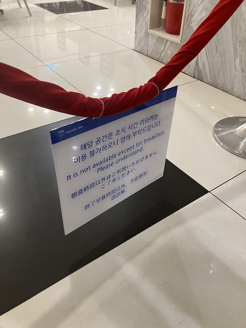 朝食時間以外はテーブルなどの利用はできないということなので、ご注意ください。日本では利用できるのですが残念。フロントとフロアが異なっているからですかね。