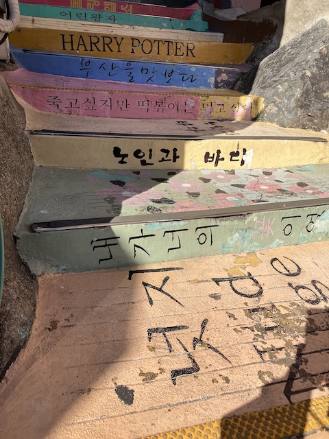 Posted in釜山_2025 甘川文化村 Posted by By asakusa 2025年1月5日No Comments 定番の観光地に行かないと!ということで甘川文化村へ。東横インエレベーター内映像でも流れていたいのでここに行けば間違いないでしょう。土城駅から小型バスで10分ほどです。地下鉄駅の階段もカスタマイズされていて良い感じです。 こっちは本物! お店を見ながら歩いて1周しても1時間ほどです。ちょうど良い広さですね。トイレも程よく設置してありますので、寒い日も安心して見学できますよ。 場所:甘川文化村 Share via: Facebook X (Twitter) LinkedIn More asakusa View All Posts Post navigation Previous Post 釜山タワーNext Post海雲台