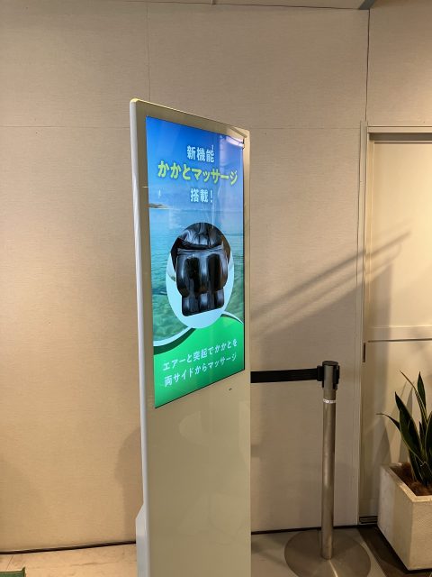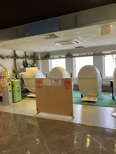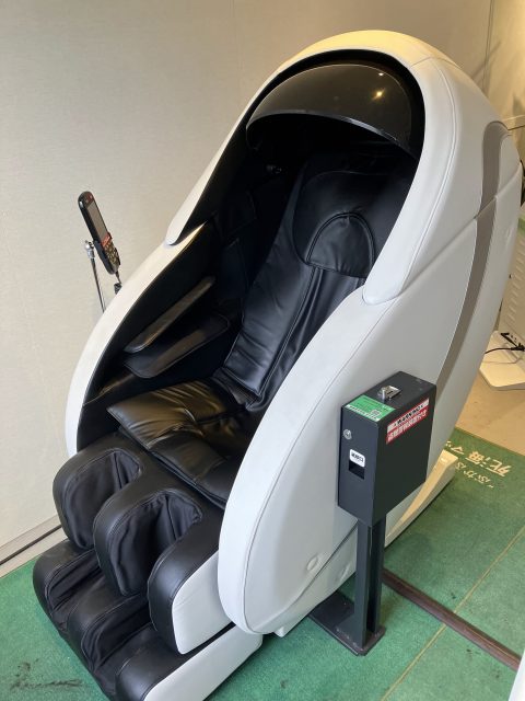 浅草観光で疲れた時におすすめ!マッサージチェア。東武浅草駅の7階、レストランフロアに4台稼働中です。