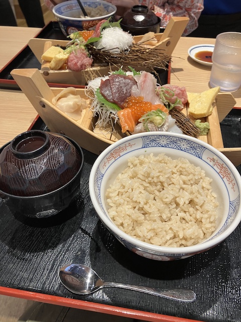 丼という名前にはなっていますけど、海鮮とご飯は別盛りで提供されます。丼にせずにこのままいただきました。ご飯が赤酢なのが嬉しいですね!