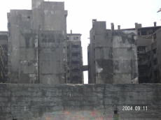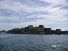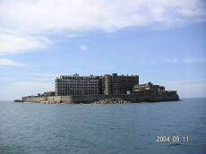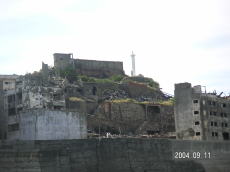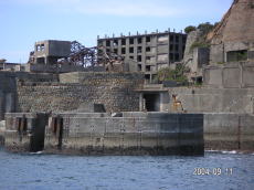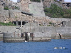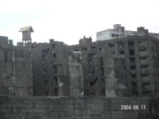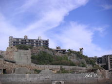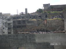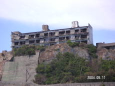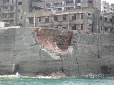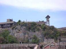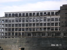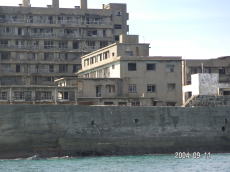 島の高いところにある、社宅です。 波を被る事も少ないこの場所は比較的 えらい方が住んでいたそうです。 (左が拡大) |