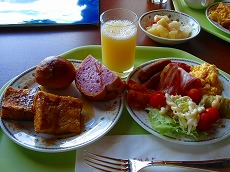 こんな感じに野菜とパンが中心。 フレッシュオレンジがオススメ。 フレンチトーストも美味しいです。 |