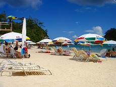 シャトルバス5分ほどで かりゆしビーチに到着です。 海は浅くて、キレイで最高です! |