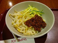 目当てのフードコートで夕食。 麺(120元)、魯肉飯セット(98元)。 魯肉飯はちょっと香辛料が きついかも。 辛子味噌をちょっと入れると 食べ易いですね。 |