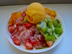 デザートはまたカキ氷。 有名な、冰館 Ice Monste。 フルーツミックス(160元) フルーツ山盛りで氷が見えません。 マンゴーだけではなく、イチゴや キウィも入ってかなり満足! |