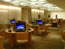 8時過ぎに無事に到着して 初の到着ラウンジ。 PCがたくさん並んでます。 |