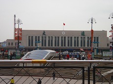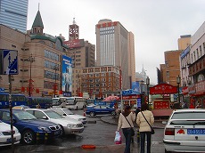 大連駅です。満州時代に 上野駅を模して作られたそうです。 駅前広場は地下がショッピング モールになっております。 |
