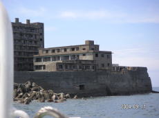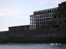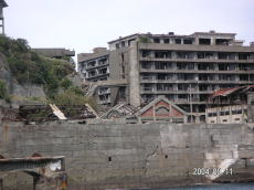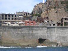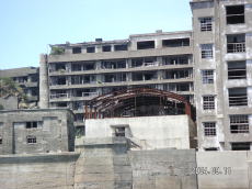 島の高いところにある、社宅です。 波を被る事も少ないこの場所は比較的 えらい方が住んでいたそうです。 (左が拡大) |