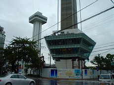 新・旧五稜郭タワーです。 古いほうは60メートル、 新しいほうは98メートルです。 来年4月に完成! |