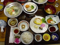 窓からは近くの旅館や ホテルが見えます。 夕食!豪華! お腹いっぱいです。 |