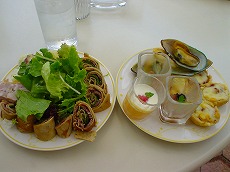 オーベルジュ・オー・ミラドーがプロデュースする ル・プチ・フランスで昼食。 前菜は、バイキング形式。山盛り。 |
