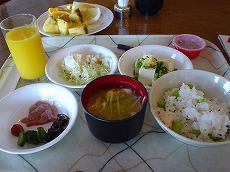 今日も朝食はバイキング! 枝豆ご飯オススメです。 フルーツもたくさん! |