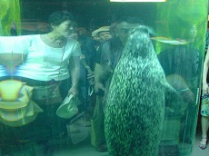 こんなに近くでペンギンを見物出来ます。 アザラシも目の前! これが人気の秘密のようです。 |