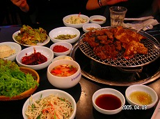 梨大まで移動。 そしてまずは焼肉。 左側がカルビで右が豚肉。 どちらも美味しい! |