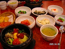 よるご飯は明洞で石焼ビビンバ。 こんなにいろいろオマケガついてきます。 |