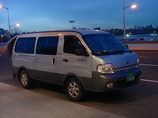 そのまま空港へ〜。 今回のバス。7人乗ったので満員。 |