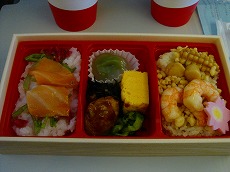 食楽コラボの空弁! テーマは【輝】ちらし寿司&天丼 普通の機内食よりも上品な 味わいでよいですね。 |