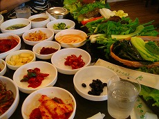 元祖サムパプチプ! 今回初挑戦ですが すごい数の野菜とキムチなどなど テーブルの上が溢れそう! |