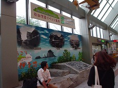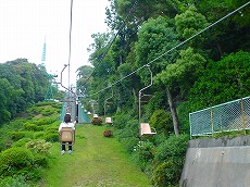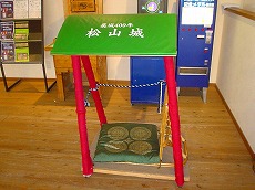 松山城は山の上にあるので ロープウェイもしくはリフトで行きます。 体力に自身のある人は多分歩けます。 「ようこられたなもし」人形がお出迎え。 |