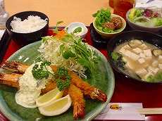 昼食はぐるめ亭という とっても派手なレストラン。 海老が大きいっ! |