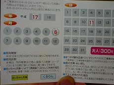 一日切符を購入。 自分で銀部分を擦り、本日の日付をいれます。 う〜ん。結構アイデア商品ですね。 |
