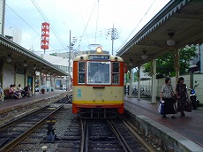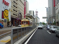 市電に乗って、松山城へ向かいます。 最寄は大街道駅です。 |