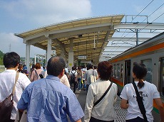 エキスポシャトルに40分揺られて、 万博八草駅からリニモに乗ります! ここで40分並びます・・・・。 |