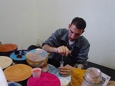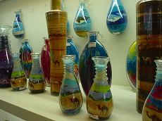 ヨルダン館の砂アート。 小瓶に上から砂を流し入れると・・・。 いつのまにかラクダの世界。(◎_◎;) |