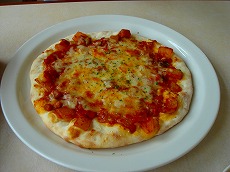 夏野菜のピザM(800円) 雪やこんこまじりっけなし(250円) は澄んだ味でおすすめ。 |