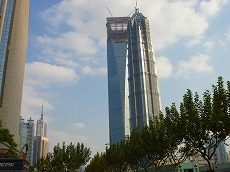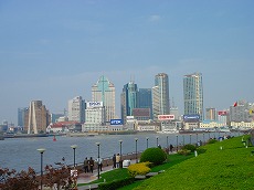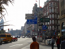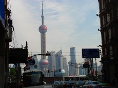 歩いて浦東へ向かいます。 東方明珠塔が遠くへ見えます。 |