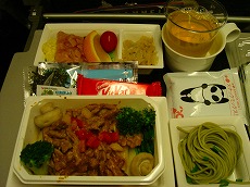 29番搭乗口から出発です。 機内食は中華。 でも、茶そば?? |