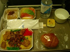 金曜日と言う事もあって 飛行機は満席でした・・・。 機内食は今回もアナゴ丼。 |