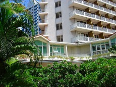 空港に到着してそのままホテルへ。 一晩たって、ホテルのSPA入り口。 |