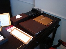机の上には案内がいろいろと。 床はピカピカで綺麗ですよ! |