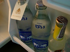 水は毎日2本無料。 でも、ビンなので少々不便。 ちょうどプールが窓から見えました。 |