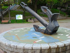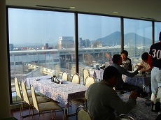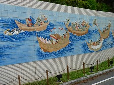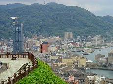 門司の町並みを展望台から 平家と源氏の合戦のタイルも |