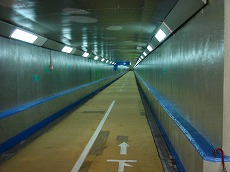 いよいよ関門トンネルを通って 下関へ帰ります! 地下は意外にひろびろ〜。 |