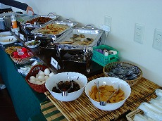 朝ごはんは和食バイキング。 なかなかの品揃えです。 |